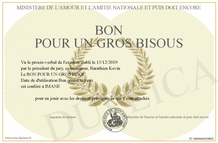 Envoyez par email votre BON POUR UN GROS BISOUS personalisé