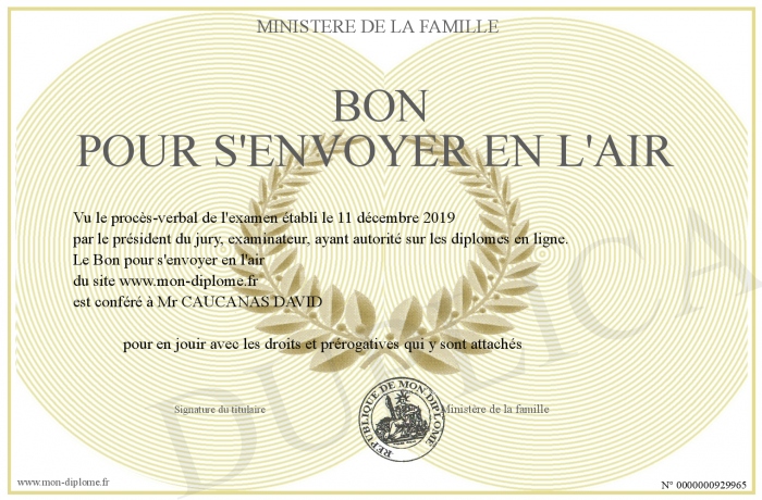 Envoyez par email votre Bon pour s'envoyer en l'air personalisé