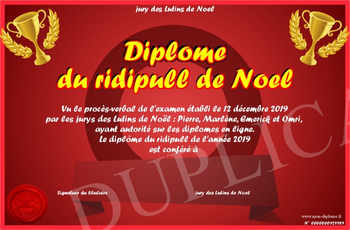 Envoyez par email votre Diplôme du ridipull de Noel personalisé