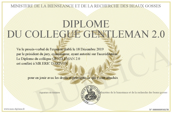 Envoyez par email votre Diplôme du collègue GENTLEMAN 2.0 personalisé