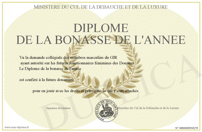 Envoyez par email votre Diplôme de la bonasse de l'année personalisé
