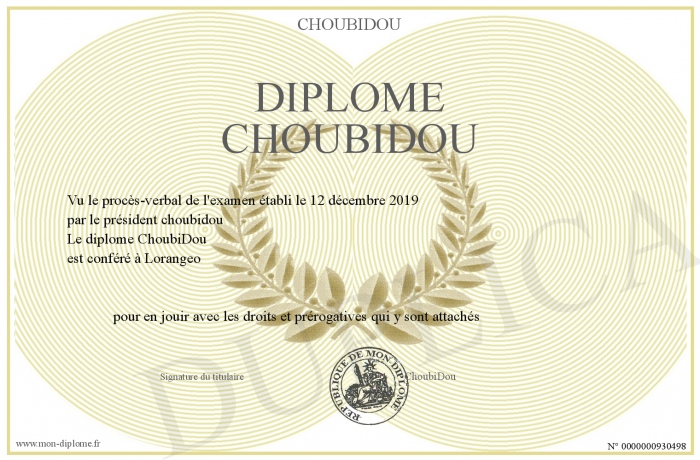 Envoyez par email votre Diplôme ChoubiDou personalisé