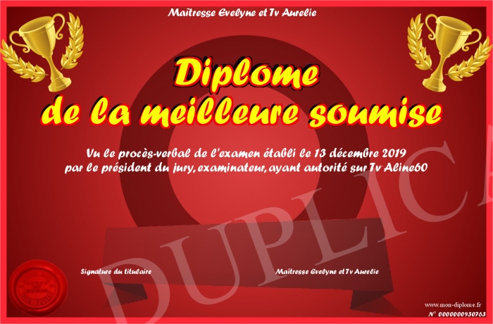 Envoyez par email votre Diplome de la meilleure soumise personalisé