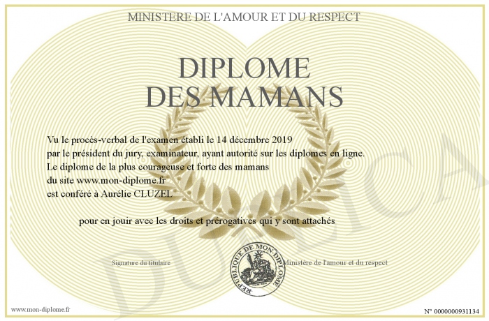 Envoyez par email votre Diplôme des mamans personalisé