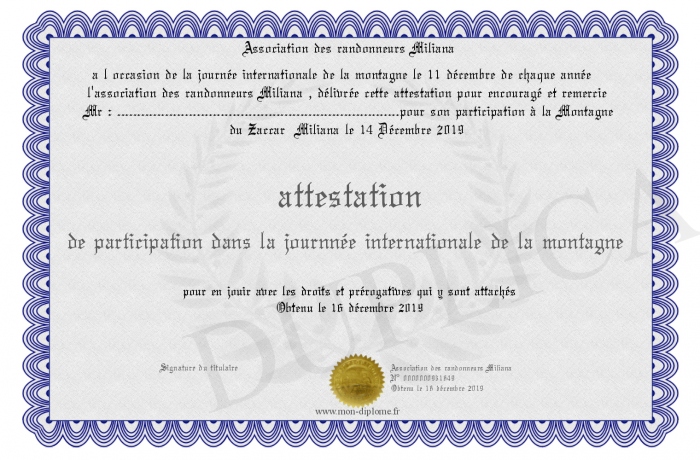 Envoyez par email votre attestation de participation dans la journnée internationale de la montagne personalisé