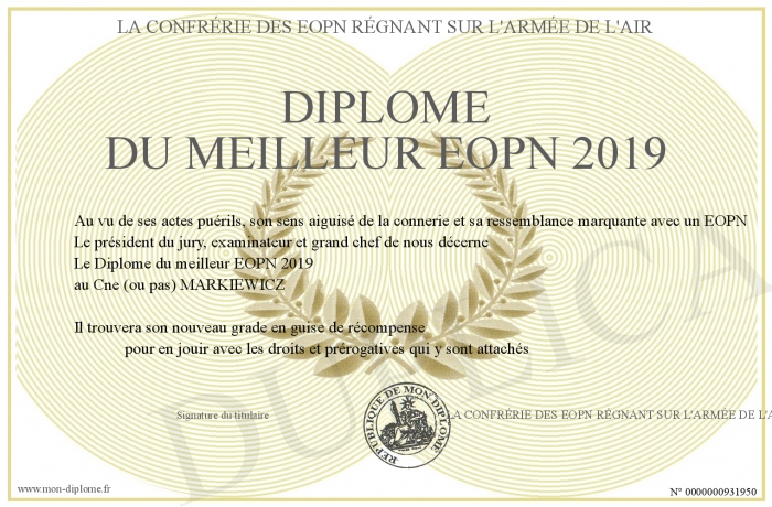 Envoyez par email votre Diplôme du meilleur EOPN 2019 personalisé