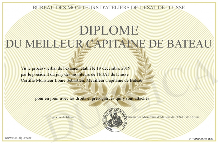 Envoyez par email votre Diplôme du meilleur capitaine de Bateau personalisé