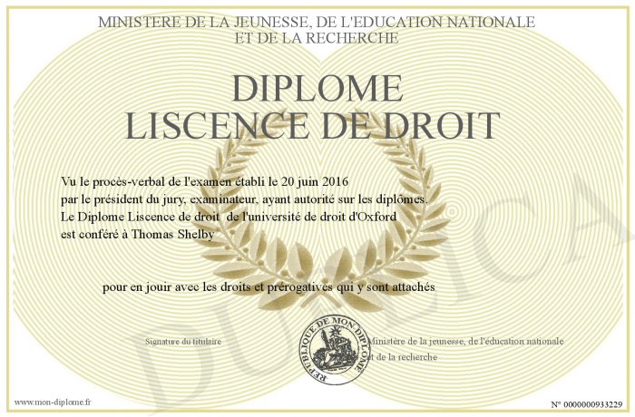 Envoyez par email votre Diplôme Liscence de droit personalisé