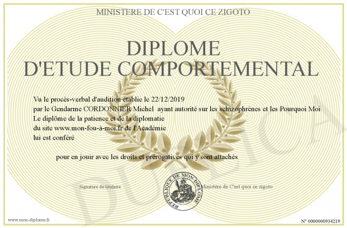 Envoyez par email votre Diplôme D'Etude comportemental personalisé