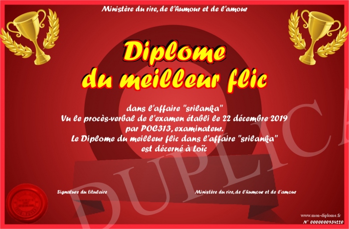 Envoyez par email votre Diplôme du meilleur flic personalisé