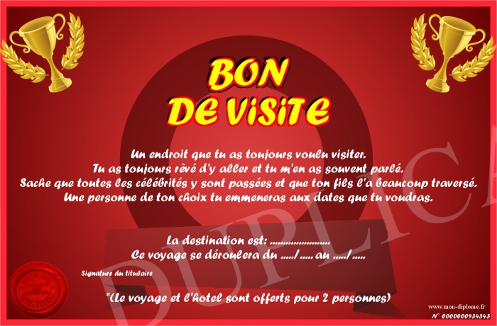 Envoyez par email votre BON DE ViSiTE personalisé