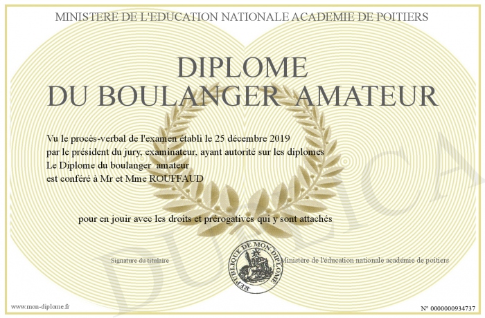 Envoyez par email votre Diplôme du boulanger amateur personalisé