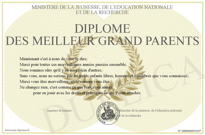 • Diplôme des meilleur grand parents