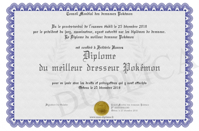 Envoyez par email votre Diplôme du meilleur dresseur Pokémon personalisé