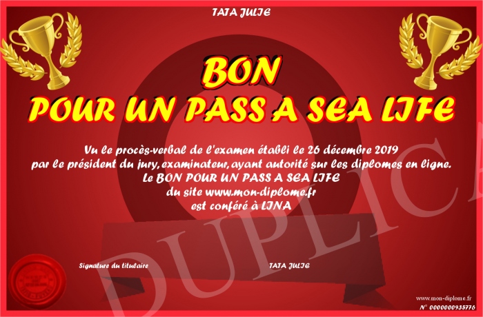 Envoyez par email votre BON POUR UN PASS A SEA LIFE personalisé