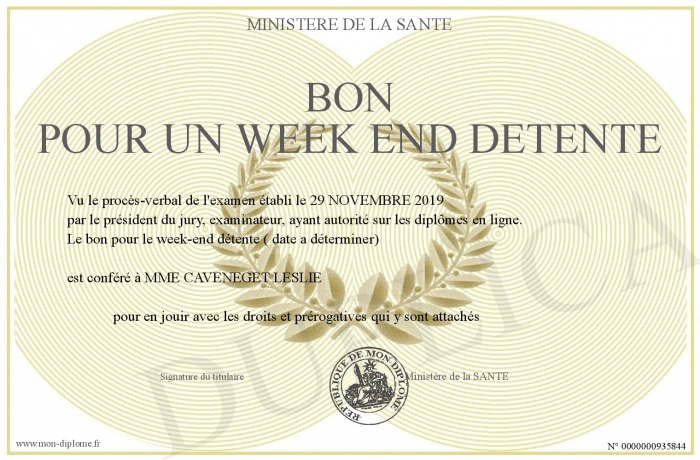Envoyez par email votre BON POUR UN WEEK END DETENTE personalisé