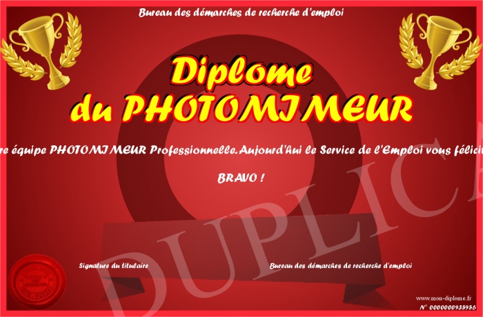 Envoyez par email votre Diplôme du PHOTOMIMEUR personalisé