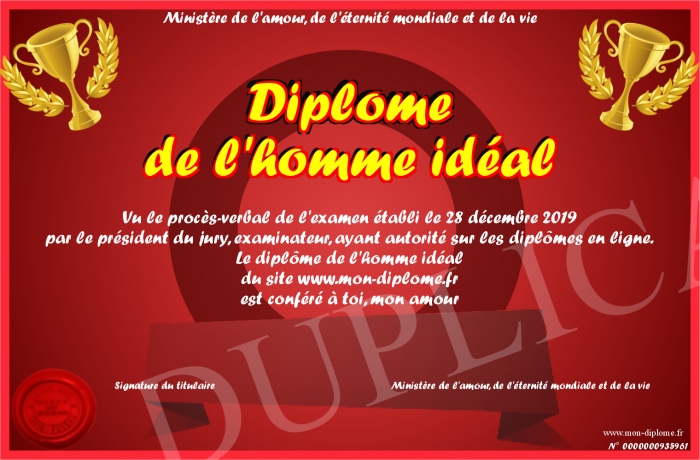 Envoyez par email votre Diplôme de l'homme idéal personalisé