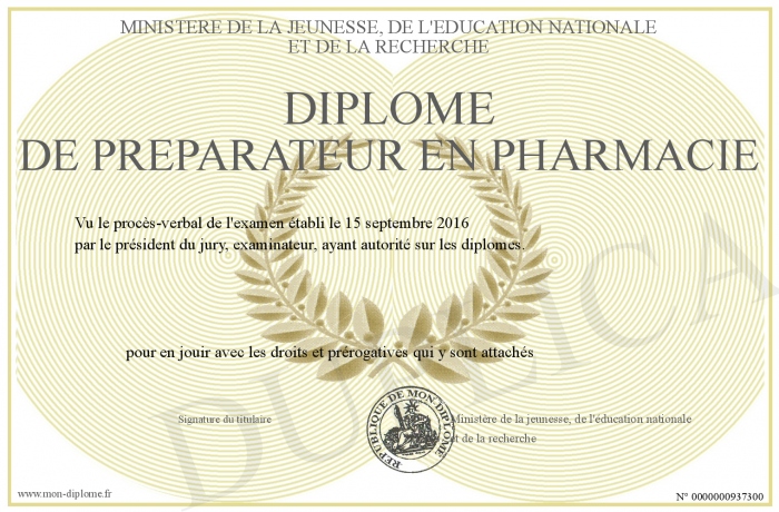 Envoyez par email votre Diplôme de préparateur en pharmacie personalisé