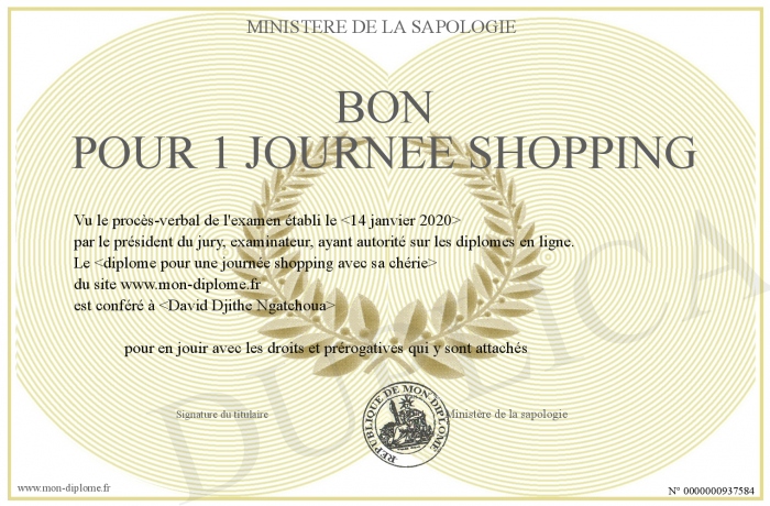 Envoyez par email votre bon pour 1 journée shopping personalisé