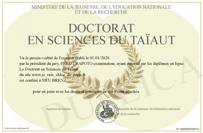 Envoyez par email votre Doctorat en Sciences du TaÏaut personalisé