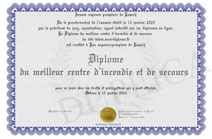 Envoyez par email votre Diplôme du meilleur centre d'incendie et de secours personalisé