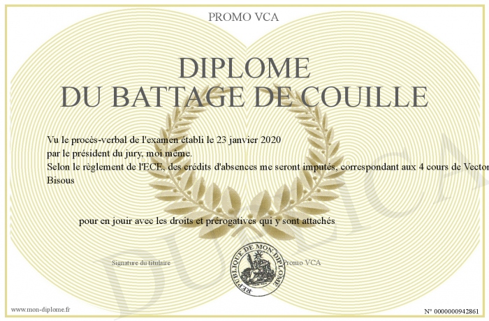 Envoyez par email votre Diplôme du battage de couille personalisé