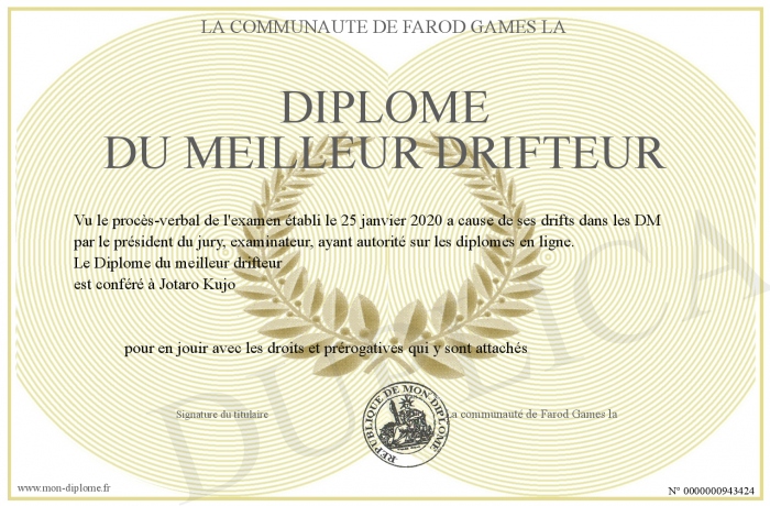 Envoyez par email votre Diplôme du meilleur drifteur personalisé