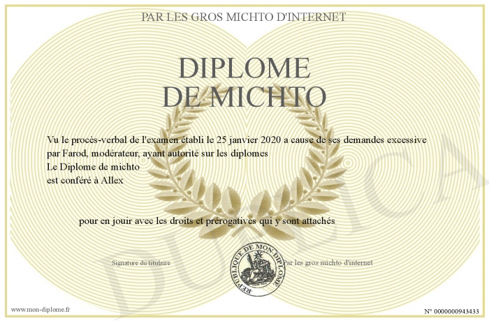 Envoyez par email votre Diplôme de michto personalisé