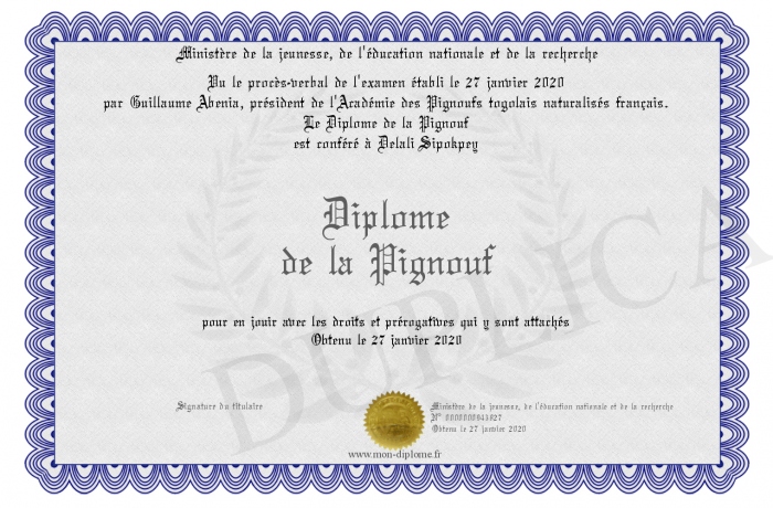 Envoyez par email votre Diplôme de la Pignouf personalisé