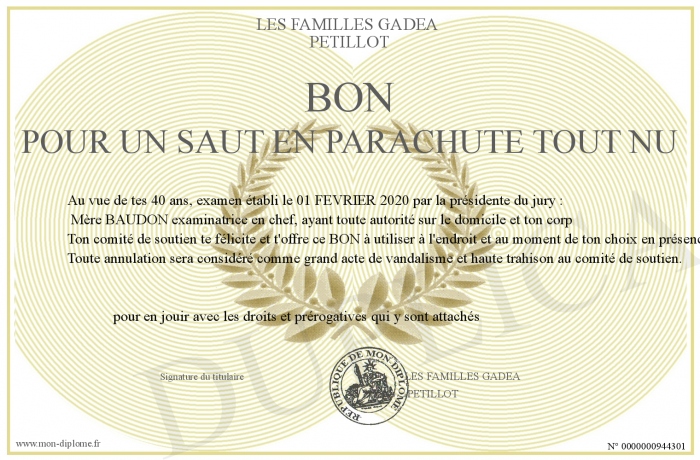 Envoyez par email votre BON POUR UN SAUT EN PARACHUTE TOUT NU personalisé