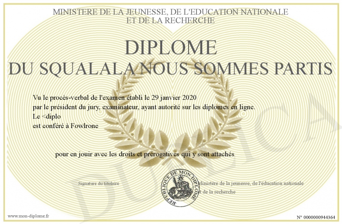 Envoyez par email votre Diplôme du Squalala nous sommes partis personalisé