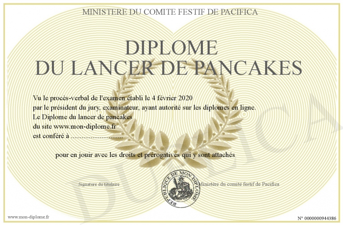 Envoyez par email votre Diplôme du lancer de pancakes personalisé