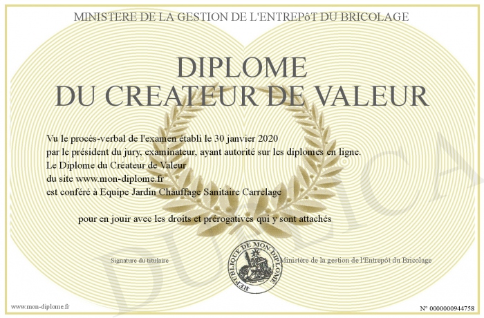 Envoyez par email votre Diplôme du Créateur de Valeur personalisé