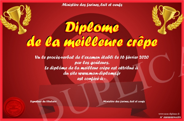 Envoyez par email votre Diplôme de la meilleure crêpe personalisé