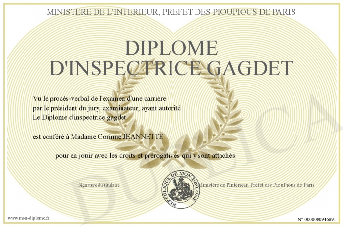 Envoyez par email votre Diplôme d'inspectrice gagdet personalisé