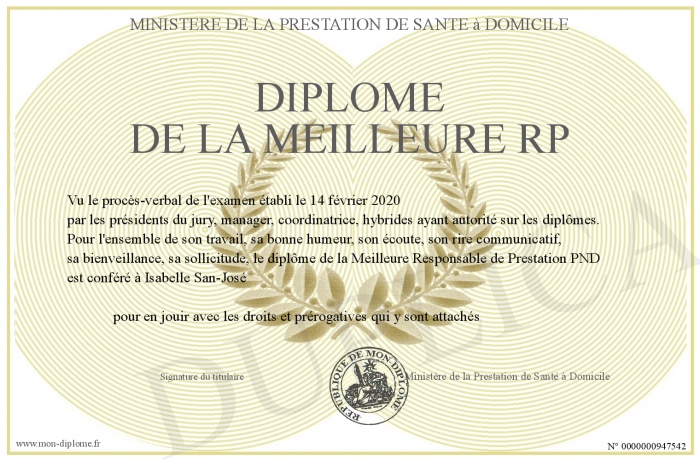 Envoyez par email votre Diplôme de la Meilleure RP personalisé