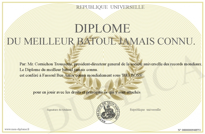 Envoyez par email votre Diplôme du meilleur batoul jamais connu. personalisé