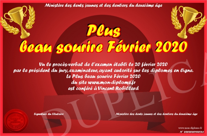 Envoyez par email votre Plus beau sourire Février 2020 personalisé