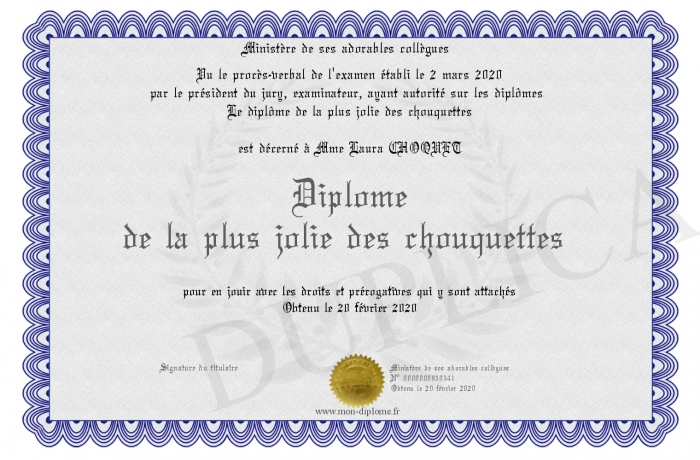 Envoyez par email votre Diplôme de la plus jolie des chouquettes personalisé