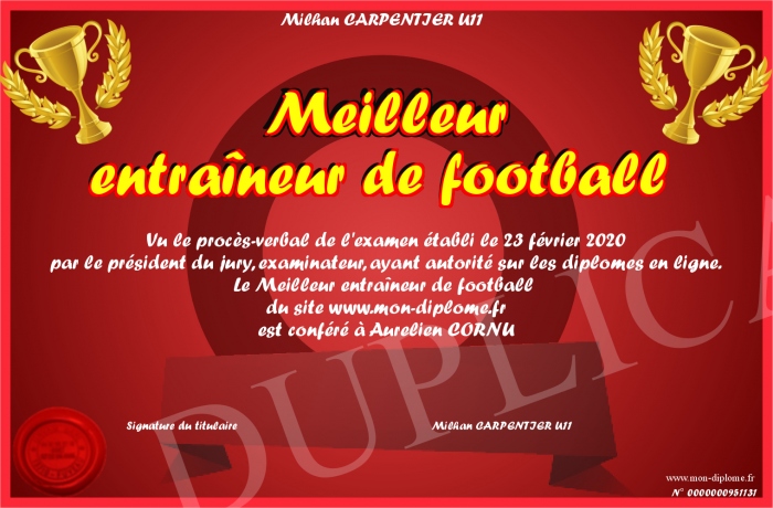 Envoyez par email votre Meilleur entraîneur de football personalisé