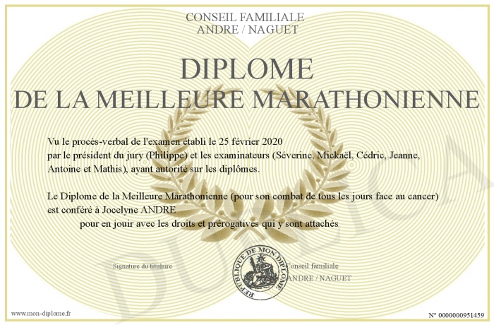 Envoyez par email votre Diplôme de la Meilleure Marathonienne personalisé