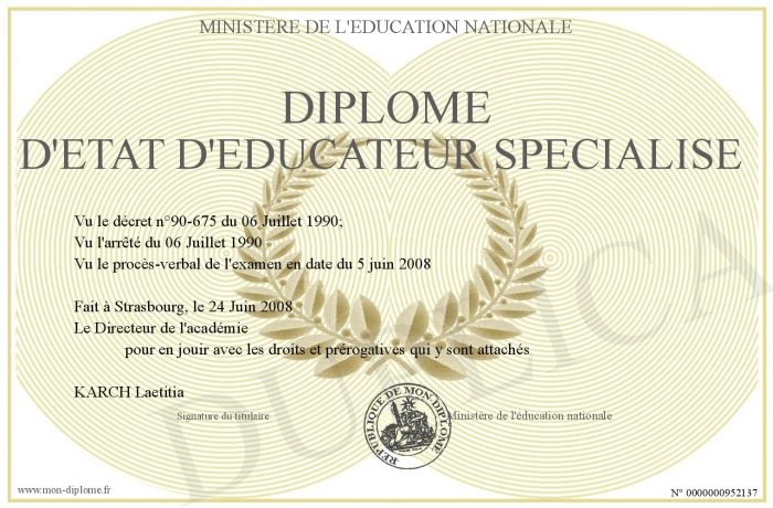 Envoyez par email votre Diplôme d'état d'éducateur spécialisé personalisé