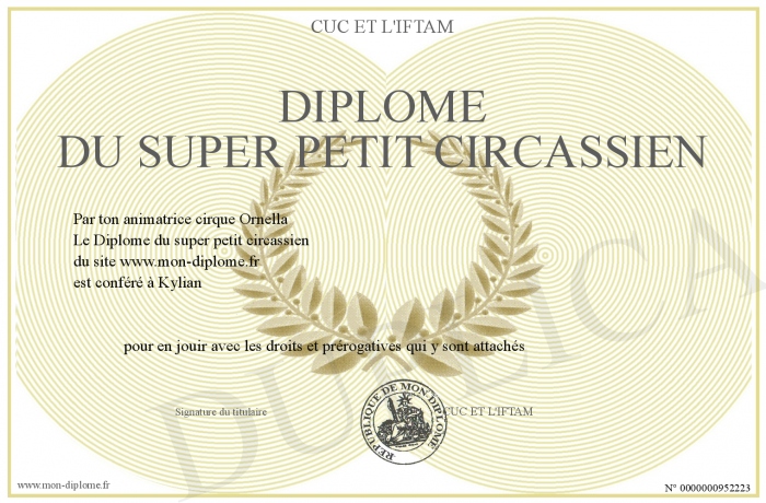 Envoyez par email votre Diplôme du super petit circassien personalisé