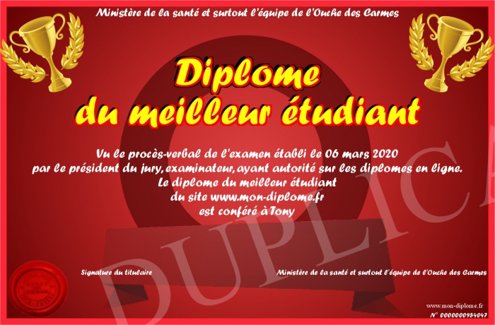 Envoyez par email votre Diplôme du meilleur étudiant personalisé