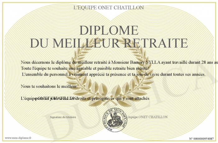 Envoyez par email votre Diplome du meilleur retraité personalisé