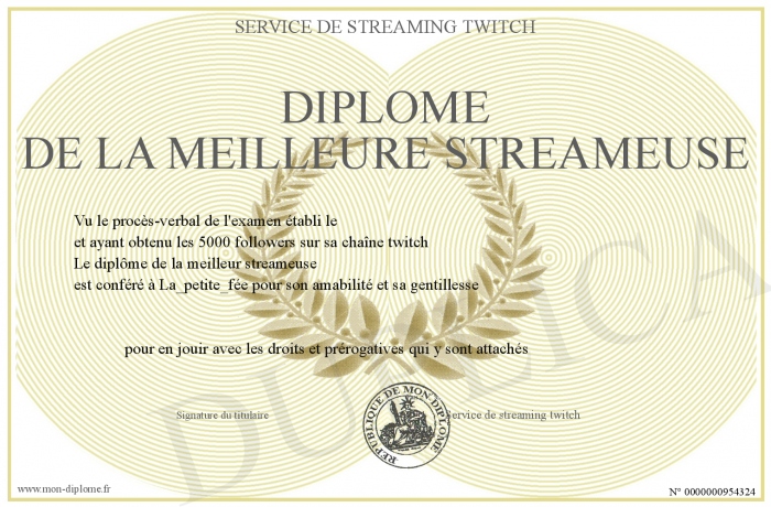 Envoyez par email votre Diplôme de la meilleure streameuse personalisé