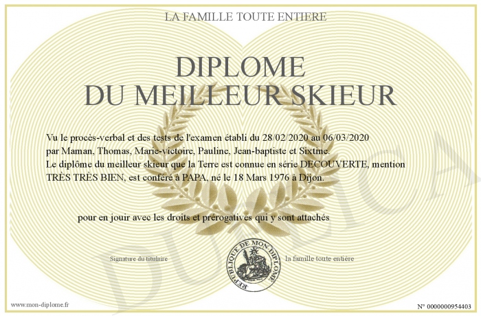 Envoyez par email votre Diplôme du meilleur skieur personalisé