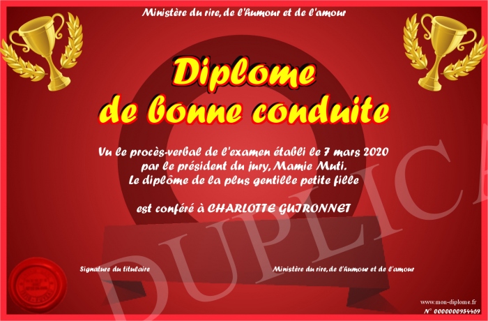 Envoyez par email votre Diplome de bonne conduite personalisé