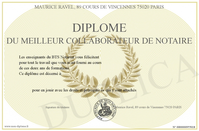 Envoyez par email votre Diplôme du meilleur collaborateur de Notaire personalisé